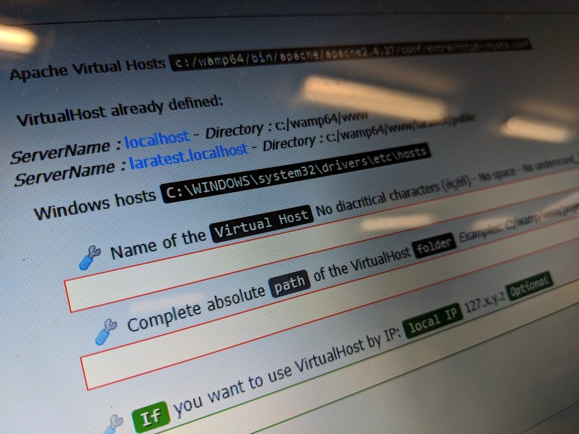 Needless to say, the steps to get this working on Windows are a bit interesting, but having got it all set up and working a treat (I’ll blog about my steps in the future) I started looking at how I could set things up so that I could just hit up http://laravel.dev in my browser, rather than http://localhost/path/to/laravel/project/public/index.php. On Mac, there looks like there’s a nifty app called Valet which can handle all this, and Laravel can run it’s own host but, hey; I’m on Windows and running WAMP.